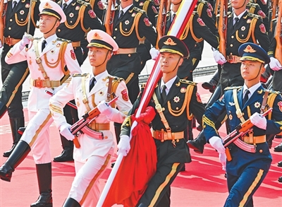 9月3日上午,纪念中国人民抗日战争暨世界反法西斯战争胜利80周年大会隆重举行。伴着雄壮的《义勇军进行曲》,张威奋力一挥,五星红旗在空中迎风展开。“那一刻我感到,我们护卫的是一个国家顶天立地的脊梁、一个民族永不屈服的信仰。”张威说。